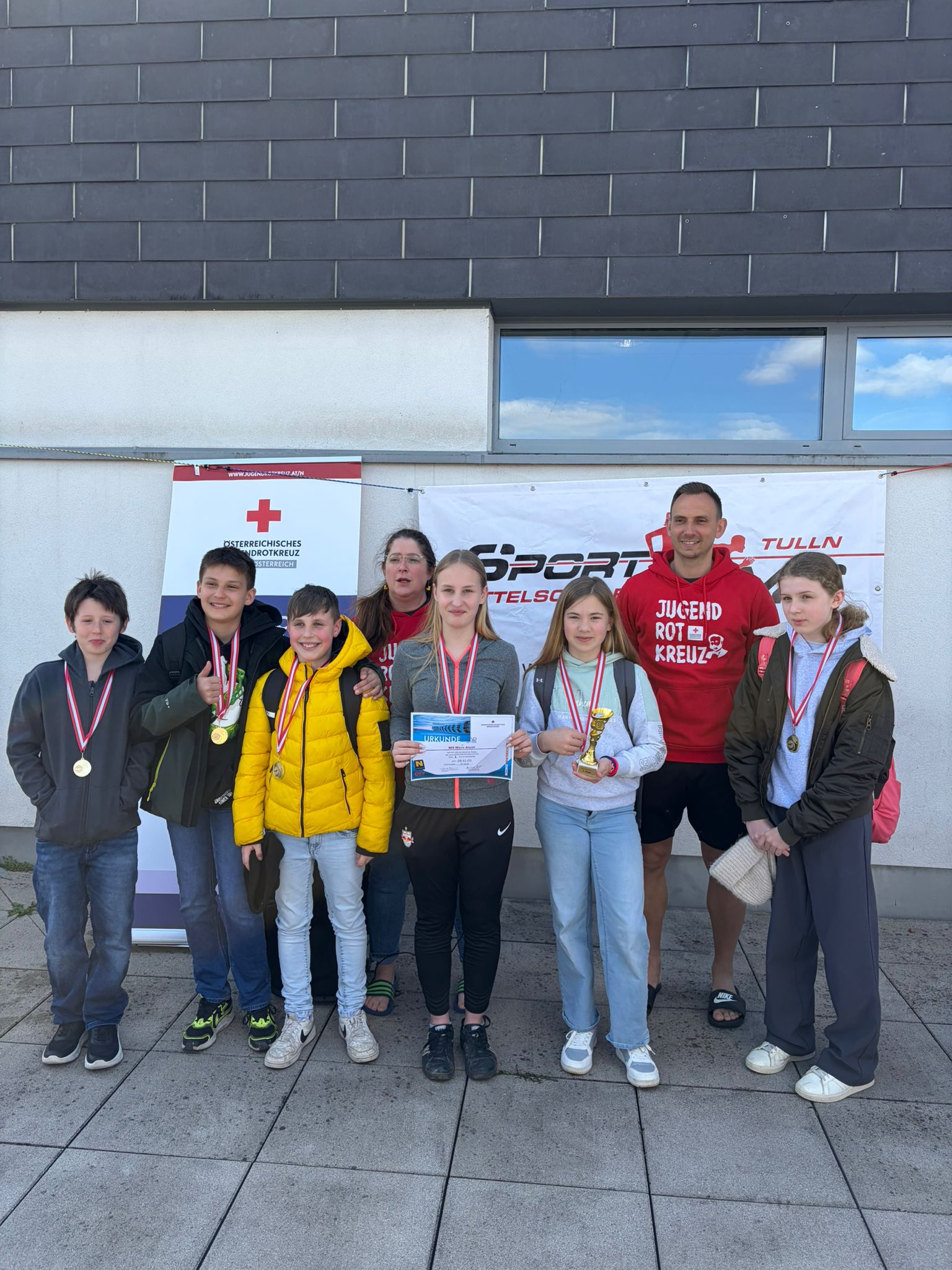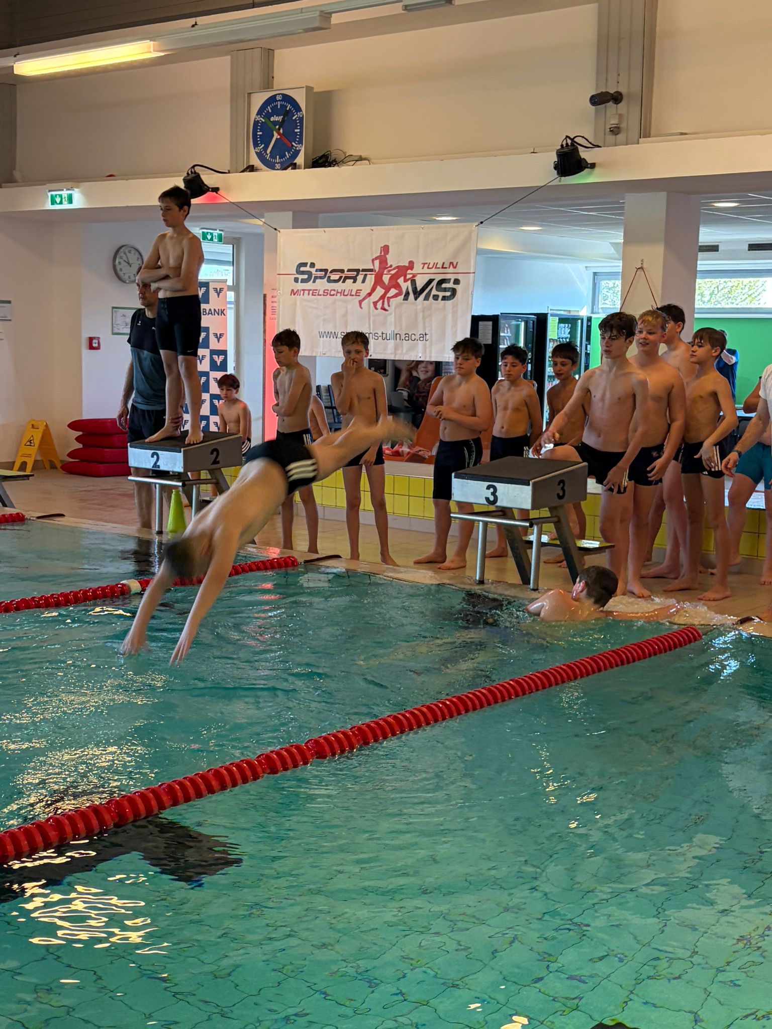 Unsere Schule nahm am 9.4.2026 beim Schwimmwettkampf im Donausplash Tulln teil. Wir waren in 2 Staffelbewerben mit einem 1. und 4. Platz erfolgreich.